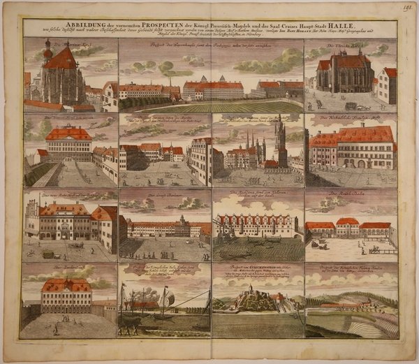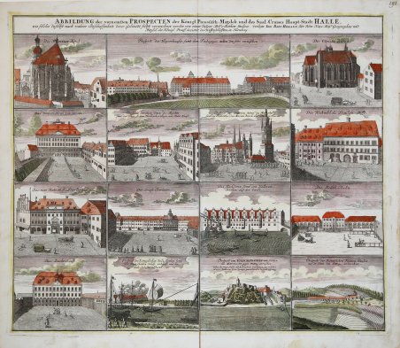 Abbildung der vornemsten Prospeten der Königl. Preussisch-Magdeb und des Saal-Craises Haupt-Stadt HALLE…