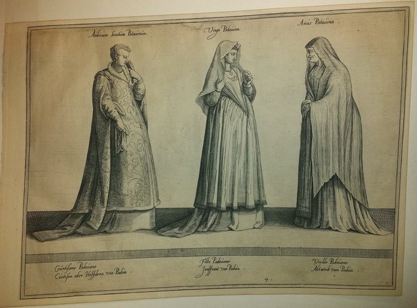 Abiti femminili Padovani: Aulicum Scostum Patavinum. Virgo Patavina. Anus Patavina. Courtisane Padovane; Curtisan oder Hoffdern von Padua. Fille Padovane; Jonffraw von Padua. Vieille Padovane; Altweib von Padua