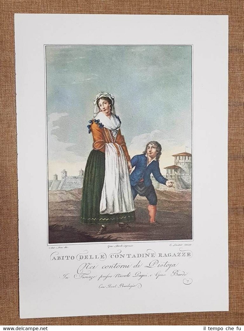 Abito Contadine ragazze di Pistoia Costume Toscana Bicci Lasinio Ristampa 1970