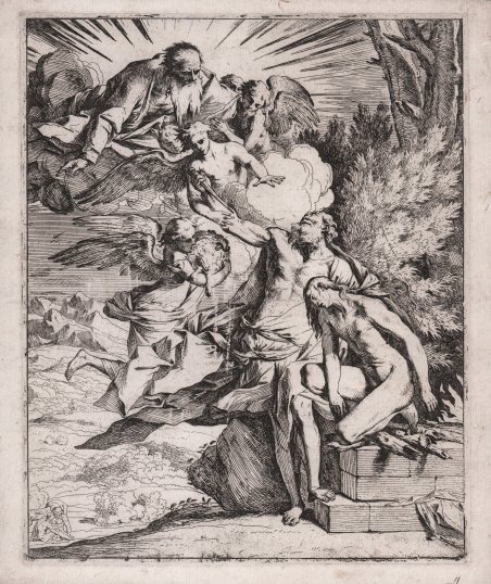 Il sacrificio di Isacco, con un angelo che trattiene la mano di Abramo. Acquaforte, 1640-42 circa, priva di firma e indicazioni editoriali. “Harris and Brigstocke place this etching in the 1630s, whereas Bellini considers it to belong to Testa's last years, or between 1645 and 1650, relating it to the series of the story of the Prodigal Son. The delineation of the landscape is far more delicate here, however, and the etched line of the fluttering draperies and the contours more finely modulated. In these respects, the print is closer to The Adoration of the Magi, even though the angels are no longer the infants that Testa had favored up to this point. They correspond instead in their age and appearance to the adolescent Isaac seen here on the altar and resemble, for example, those in drawings for The Holy Family with Saint Anne and Angels and in the painting of The Presentation of the Virgin in the Temple. As in The Adoration of the Magi and the painting An Allegory of the Massacre of the Innocents, Testa represents a second episode in the landscape, although here the relationship is not sequential. According to the account in Genesis 22: 1-14, Abraham left behind with the ass the men who had accompanied him as he went to the mountain to sacrifice Isaac. Testa emphasizes the mystery of God's intervention by showing these men with the ass seated unaware in the sunshine lower down the hillside as one angel stays Abraham's arm and another brings the sacrificial ram. Meijer and Van Tuyll have observed that Testa's invention may be connected to the terracotta relief of the same subject by Alessandro Algardi, probably from the late 1630s (now in the Seattle Art Museum). There are many differences between the two, and the motif of the angel grasping the sword is not unique to Algardi's invention, but the proportions and appearance of Testa's figure of Abraham may well indicate his knowledge of the relief. Testa may also have known Domenichino's painting of this subject (now in the Museo del Prado, Madrid, and possibly sent to Spain in 1636), in which the angel also removes the dagger from Abraham's hand and a brilliant landscape is similarly juxtaposed to the shady trees behind Abraham, whose features likewise resemble those portrayed by Testa. The uncontrolled open biting close to the edges of the plate, especially near the lower border, the vertical white spaces where the horizontal etched lines are broken near the angel with the ram, and the accidentally inked scratches appear in all impressions of this print. Despite his careful preparation of the invention through detailed studies, Testa was clearly not especially concerned about the thorough polishing and cleaning of the plate. The flaring in the dark shadows around Isaac's groin and in the head of the angel bearing the ram suggests that the ground was not hard enough to withstand the bite where many lines were worked close together” (cf. Elizabeth Cropper, Pietro Testa, pp. 145-149). Magnifica prova, ricca di toni, impressa su carta vergata coeva con filigrana “giglio su monti nel doppio cerchio”, con margini di circa un centimetro, in ottimo stato di conservazione. Bibliografia Bartsch, Le Peintre graveur (XX.215.2); Cropper, Pietro Testa, Prints and Drawings (71.I); Bellini, Pietro Testa, n. 26. The sacrifice of Isaac, with an angel staying Abraham's hand. Etching, circa 1640-42, unsigned. “Harris and Brigstocke place this etching in the 1630s, whereas Bellini considers it to belong to Testa's last years, or between 1645 and 1650, relating it to the series of the story of the Prodigal Son. The delineation of the landscape is far more delicate here, however, and the etched line of the fluttering draperies and the contours more finely modulated. In these respects, the print is closer to The Adoration of the Magi, even though the angels are no longer the infants that Testa had favored up to this point. They correspond instead in their age and appearance to the adolescent Isaac seen here on the altar and resemble, for example, those in drawings for The Holy Family with Saint Anne and Angels and in the painting of The Presentation of the Virgin in the Temple. As in The Adoration of the Magi and the painting An Allegory of the Massacre of the Innocents, Testa represents a second episode in the landscape, although here the relationship is not sequential. According to the account in Genesis 22: 1-14, Abraham left behind with the ass the men who had accompanied him as he went to the mountain to sacrifice Isaac. Testa emphasizes the mystery of God's intervention by showing these men with the ass seated unaware in the sunshine lower down the hillside as one angel stays Abraham's arm and another brings the sacrificial ram. Meijer and Van Tuyll have observed that Testa's invention may be connected to the terracotta relief of the same subject by Alessandro Algardi, probably from the late 1630s (now in the Seattle Art Museum). There are many differences between the two, and the motif of the angel grasping the sword is not unique to Algardi's invention, but the proportions and appearance of Testa's figure of Abraham may well indicate his knowledge of the relief. Testa may also have known Domenichino's painting of this subject (now in the Museo del Prado, Madrid, and possibly sent to Spain in 1636), in which the angel also removes the dagger from Abraham's hand and a brilliant landscape is similarly juxtaposed to the shady trees behind Abraham, whose features likewise resemble those portrayed by Testa. The uncontrolled open biting close to the edges of the plate, especially near the lower border, the vertical white spaces where the horizontal etched lines are broken near the angel with the ram, and the accidentally inked scratches appear in all impressions of this print. Despite his careful preparation of the invention through detailed studies, Testa was clearly not especially concerned about the thorough polishing and cleaning of the plate. 