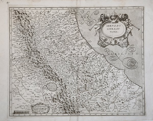 Carta geografica tratta da "L'Italia" a cura di Fabio Magini, edito a Bologna nel 1620, tre anni dopo la prematura morte del padre.Composto da un breve testo descrittivo di sole 24 carte, l’opera è corredata di 61 carte geografiche della penisola, e costituisce il primo esempio di atlante italiano. L’opera è per intero di mano del Magini, che iniziò la realizzazione delle carte nel 1594 circa, dando alla luce per prima nel 1595 la carta del territorio di Bologna. Tutte le carte vennero alle stampe quindi prima del 1620, nelle loro stesure provvisorie, successivamente corrette ed aggiornate per l’edizione definitiva. Per la realizzazione delle lastre il Magini si servì di due dei più famosi intagliatori dell’epoca: il belga Arnoldo Arnoldi e l’inglese Benjamin Wright. Il Magini, per le carte del Regno di Napoli, si ispirò al rilievo ufficiale eseguito dallo studioso nolano Niccolò Antonio Stigliola il collaborazione con il cartografo viterbese Mario Cartaro, che tra il 1583 ed il 1594 ebbero l’incarico di realizzare una grande carta del reame. Incisa da Benjamin Wright. ' Nel cartiglio in alto a destra il titolo ABRUZZO CITRA, ET ULTRA. In basso a sinistra la scala grafica Scala di Miglia dieci (10 miglia pari a mm 45). Nell’angolo in basso a destra le iniziali B. W. (Benjamin Wright). Orientazione nei quattro lati al centro con il nome dei punti cardinali Septentrio, Meridies, Oriens, Occidens, il nord in alto. Graduazione ai margini di 1’ in 1’ da 41° 45’ a 42° 55’ 20’’ di latitudine, e da 36° 23’ a 38° 22’ 15’’ di longitudine.Esemplare di secondo stato; in basso a sinistra aggiunto un cartiglio con la dedica All’ Ill.mo et Ecc.mo mio S.r et P[at]ron[us] Col.o il S.r D. Cesare Gonzaga Prencipe di Molfetta et Sig.r di Guastalla. Segue l’imprint editoriale Fabio di Gio. Ant. Magini.Bell'esemplare, in ottimo stato di conservazione.BibliografiaAlmagià (1922): pp. 73-78, n. 20. Map taken from ' L'Italia ' edited by Fabio Magini, published in Bologna in 1620, three years after the untimely death of his father. Composed of a short descriptive text of only 24 pages, the work is accompanied by 61 maps of the peninsula, and is the first example of an Italian atlas. The work is entirely by the hand of Giovanni Antonio Magini, who began the realization of the maps in 1594 or so; the first dated map (1595) the map of the territory of Bologna. All the maps were printed before 1620, in their provisional drafts, later corrected and updated for the final edition. For the realization of the plates Magini used two of the most famous engravers of the time: the Belgian Arnoldo Arnoldi and the English Benjamin Wright. Copperplate, in good condition. Nel cartiglio in alto a destra il titolo ' ABRUZZO CITRA, ET ULTRA. In basso a sinistra la scala grafica Scala di Miglia dieci (10 miglia pari a mm 45). Nell’angolo in basso a destra le iniziali B. W. (Benjamin Wright). Orientazione nei quattro lati al centro con il nome dei punti cardinali ' Septentrio, Meridies, Oriens, Occidens, il nord in alto. Graduazione ai margini di 1’ in 1’ da 41° 45’ a 42° 55’ 20’’ di latitudine, e da 36° 23’ a 38° 22’ 15’’ di longitudine. Esemplare di secondo stato; in basso a sinistra aggiunto un cartiglio con la dedica All’ Ill.mo et Ecc.mo mio S.r et P[at]ron[us] Col.o il S.r D. Cesare Gonzaga Prencipe di Molfetta et Sig.r di Guastalla. Segue l’imprint editoriale Fabio di Gio. Ant. Magini. Bibliografia Almagià (1922): pp. 73-78, n. 20. Cfr.
