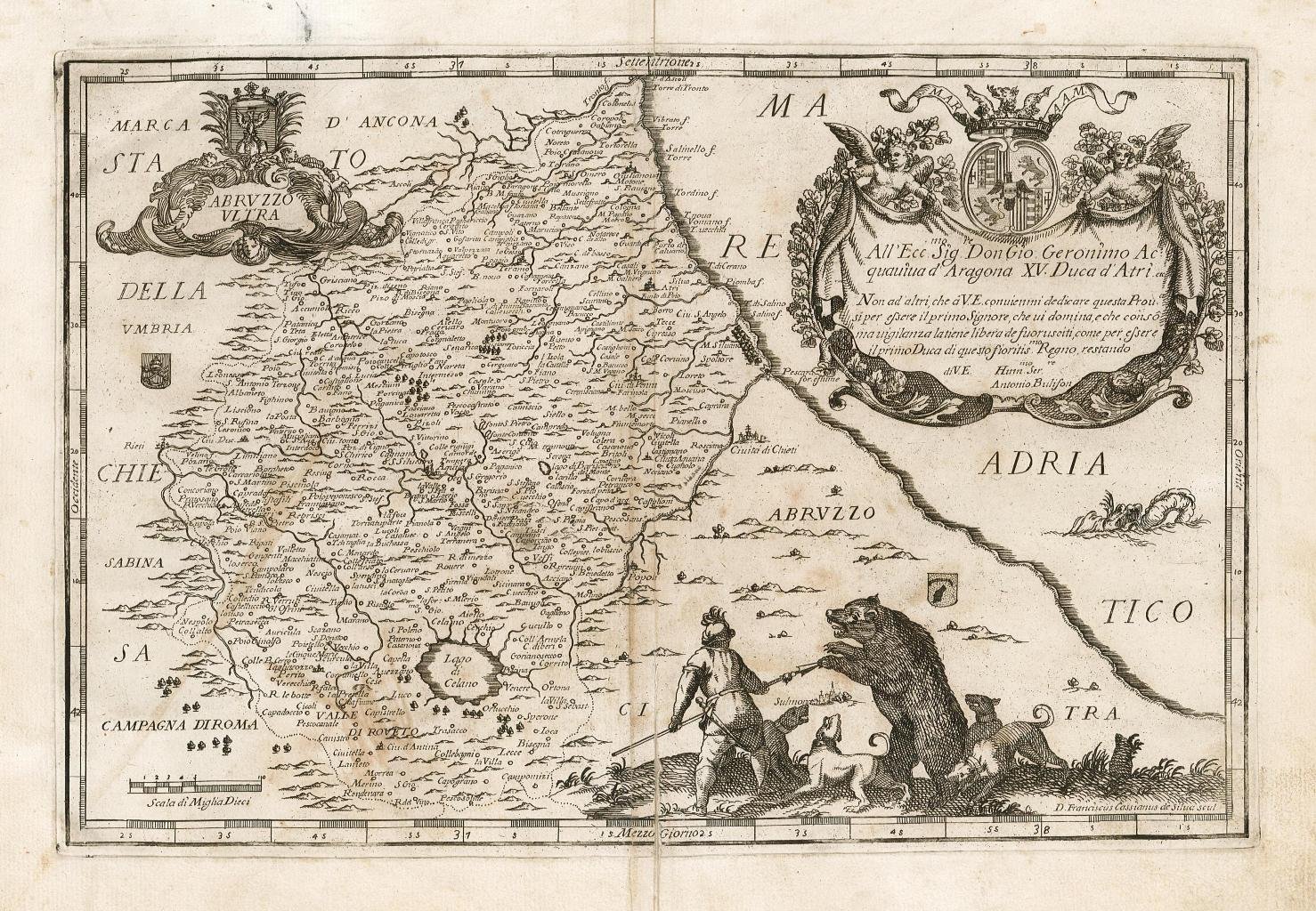 Stampa, antica e originale, con carta disegnata ed incisa da Francesco Cassiano de Silva, inserita nella seconda edizione dell' Atlante geografico interamente concepito, disegnato ed inciso nella città di Napoli. Interessanti sono le vicende che portarono alla pubblicazione di questa rara seconda edizione, infatti: i rami delle carte inserite nella prima edizione dal titolo "Accuratissima e nuova delineazione del Regno di Napoli con le sue provincie distinte." pubblicata nel 1692, a cura di Antonio Bulifon, andarono dispersi durante l'occupazione di Napoli da parte degli Austriaci nel 1707. Solamente il fortunoso ritrovamento degli stessi nel 1734 ad opera diLuigi Bolifoni (nipote di Antonio), rientrato a Napoli al seguito di Carlo di Borbone, permise la pubblicazione di questa edizione dedicata al nuovo Re.
