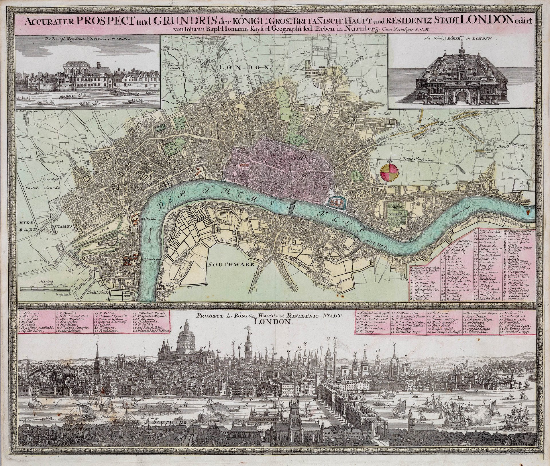 Accurater Prospect und Grundris der Konigl Gros Britanisch Haupt und Residenz Stadt London