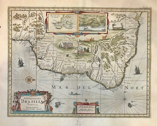 Carta geografica originale (cm. 49x38 più ampi margini bianchi) tratta dall’edizione in lingua latina dell’ ‘Atlas novus, sive descriptio geographica orbis terrarum’ pubblicato da Johannes Janssonius ed Henricus Hondius. Splendida coloritura d’epoca all’acquarello. Esemplare in ottimo stato di conservazione. Rara.