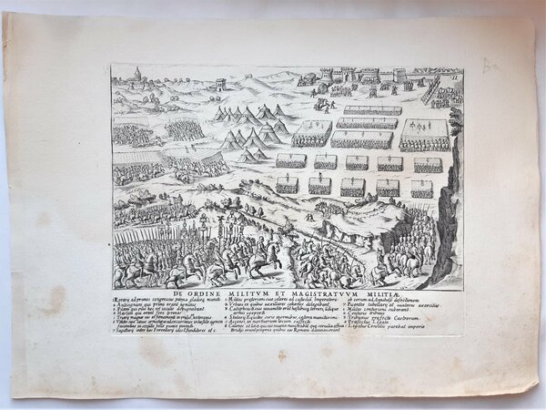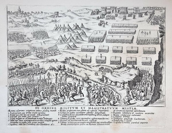 Acquaforte old print Romanae magnetudinis Ordine e magistrature delle milizie romane G. Lauro 1699