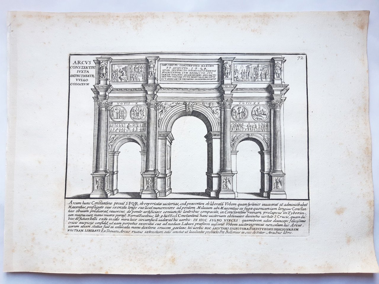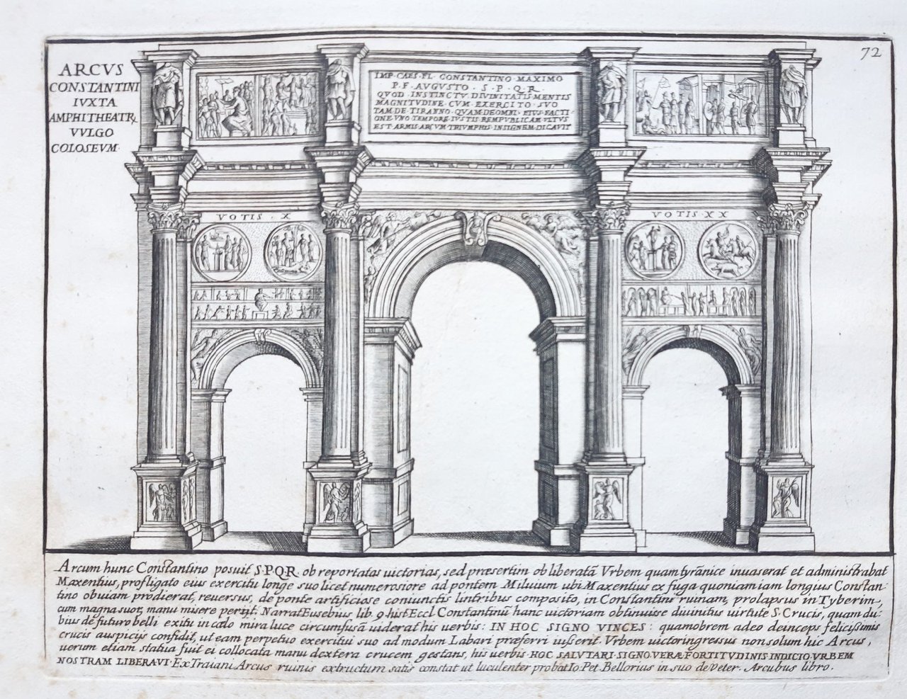 Acquaforte old print Romanae magnitudinis Roma Arco di Costantino G. Lauro 1699