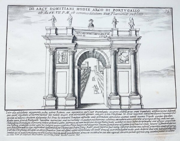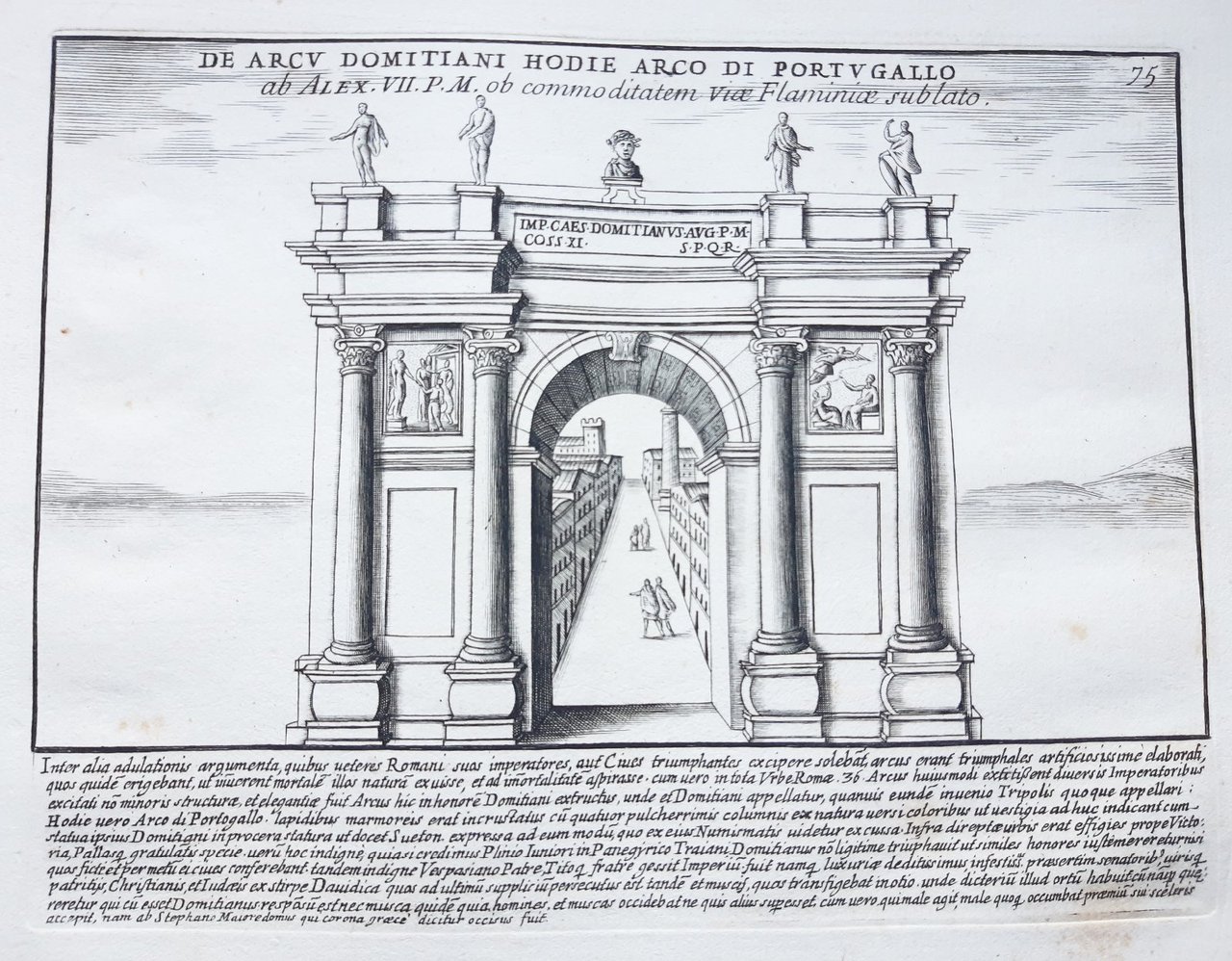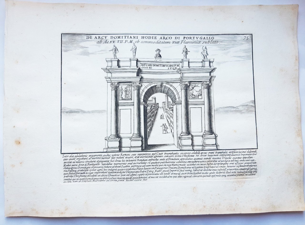 Acquaforte old print Romanae magnitudinis Roma Arco di Domiziano G. Lauro 1699