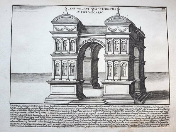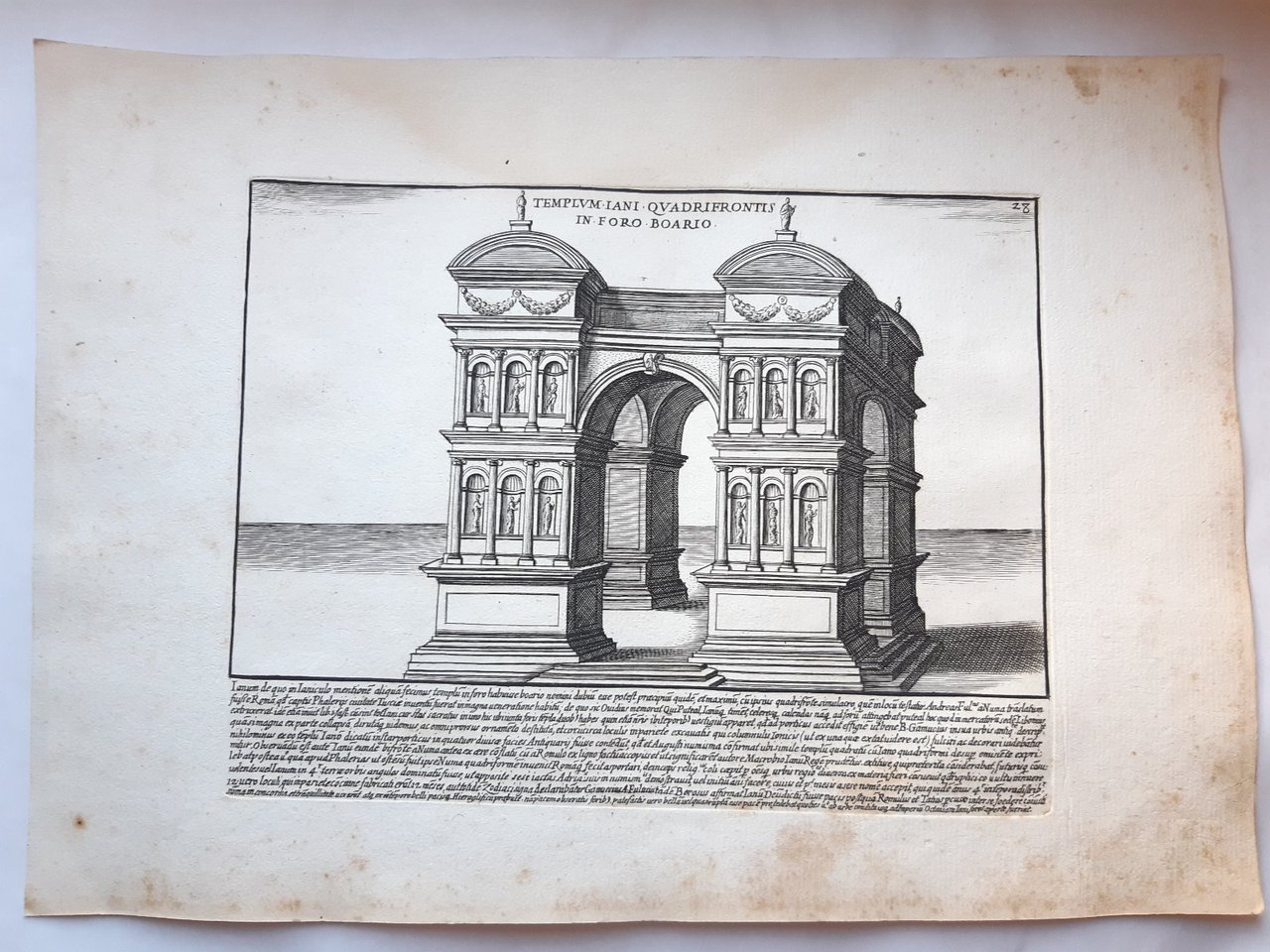 Acquaforte old print Romanae magnitudinis Roma Arco di Giano G. Lauro 1699