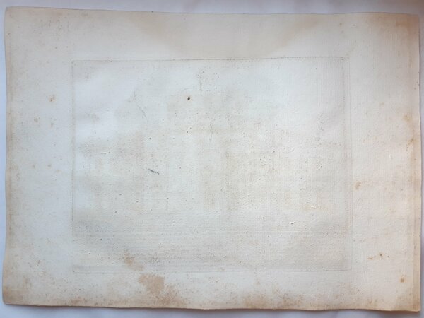 Misure foglio cm. 25 x 35 l'incisione cm. 18 x 23,7 in discreto stato alone di umidità su quasi tutto il foglio, fioriture ai margini, margine sinistro rifilato
