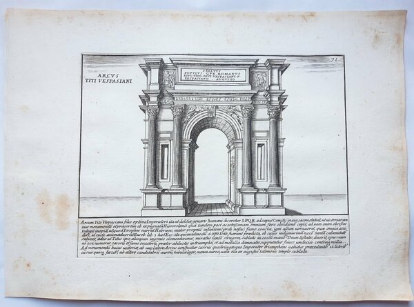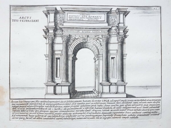 Acquaforte old print Romanae magnitudinis Roma Arco di Tito G. Lauro 1699