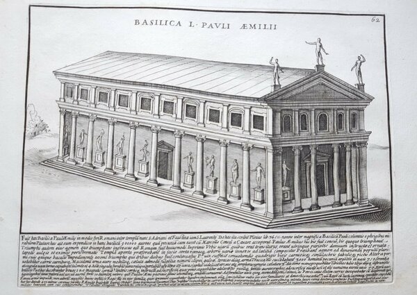Acquaforte old print Romanae magnitudinis Roma Basilica Emilia G. Lauro 1699