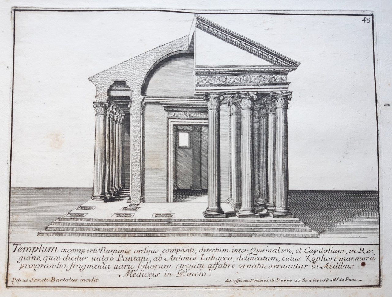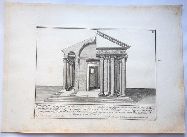 Acquaforte old print Romanae magnitudinis Roma Spaccato di un tempio G. Lauro 1699