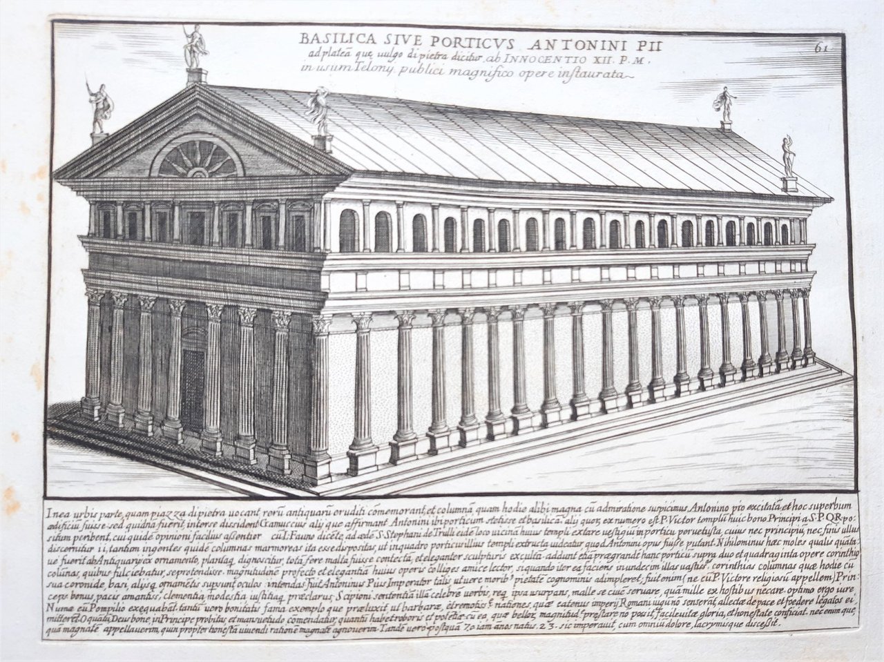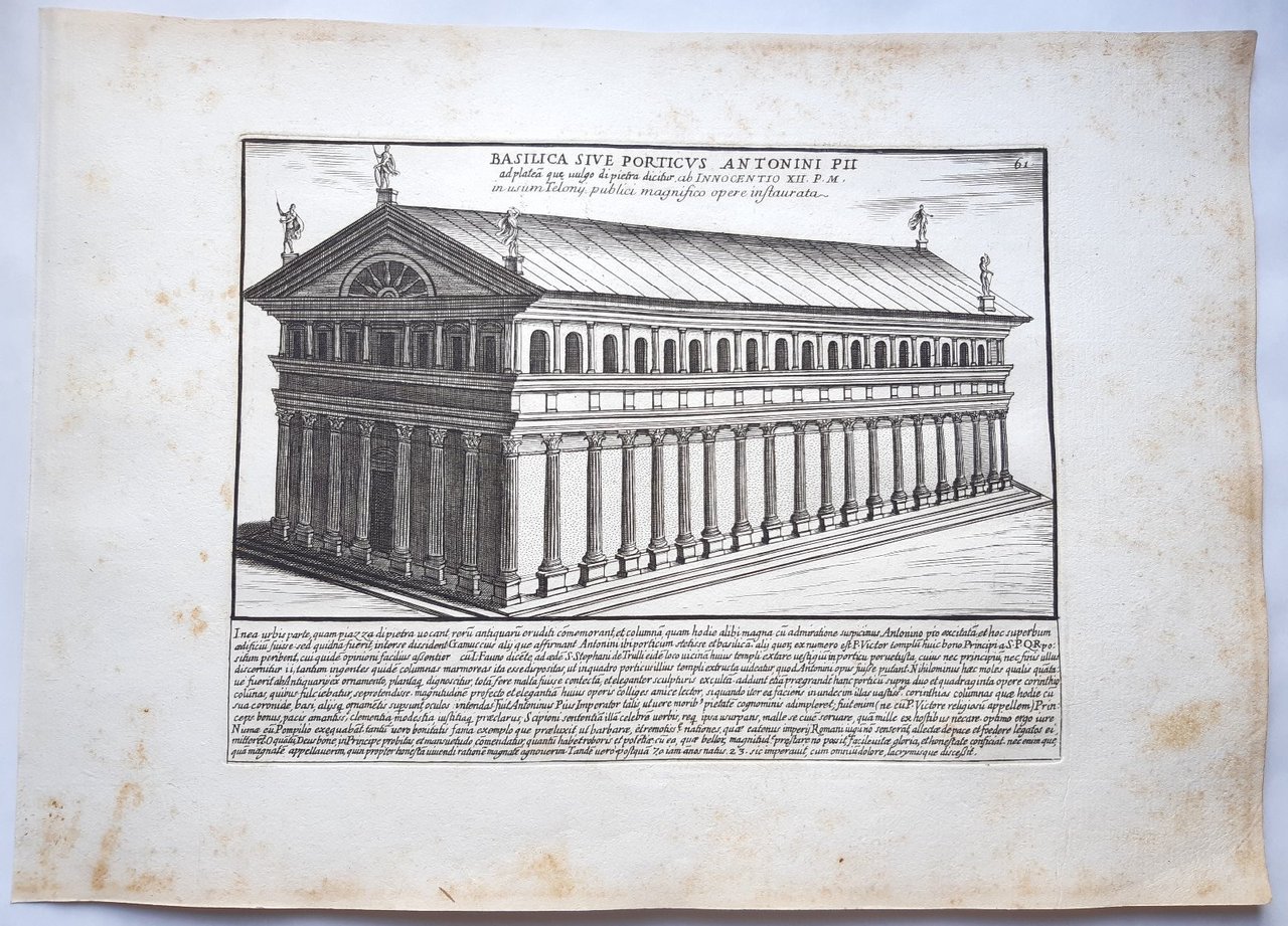 Acquaforte old print Romanae magnitudinis Roma Tempio di Adriano G. Lauro 1699