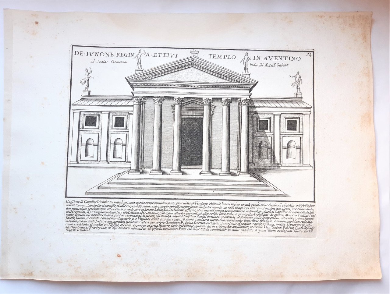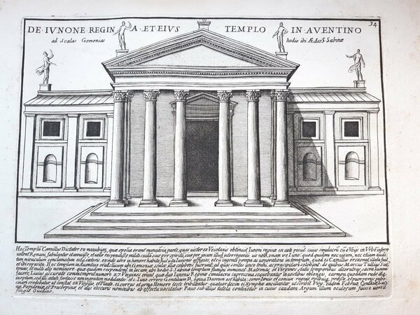 Acquaforte old print Romanae magnitudinis Roma Tempio di Giunone G. Lauro 1699