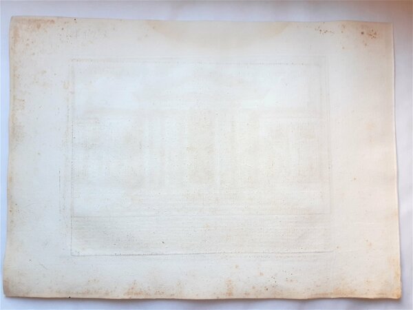 Su carta vergata coeva misure foglio cm. 25 x 35 l'incisione cm. 18 x 23,7 in discreto stato alone di umidità su quasi tutto il foglio, alcune fioriture e piccole pieghe ai margini, margine sinistro rifilato
