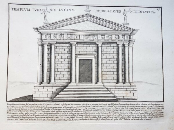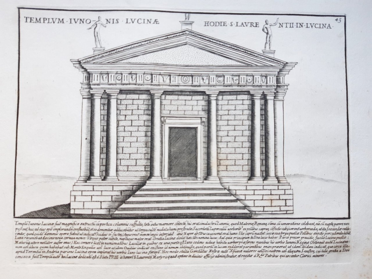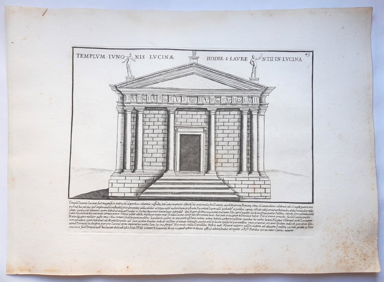 Acquaforte old print Romanae magnitudinis Roma Tempio di Giunone Lucina G. Lauro 1699