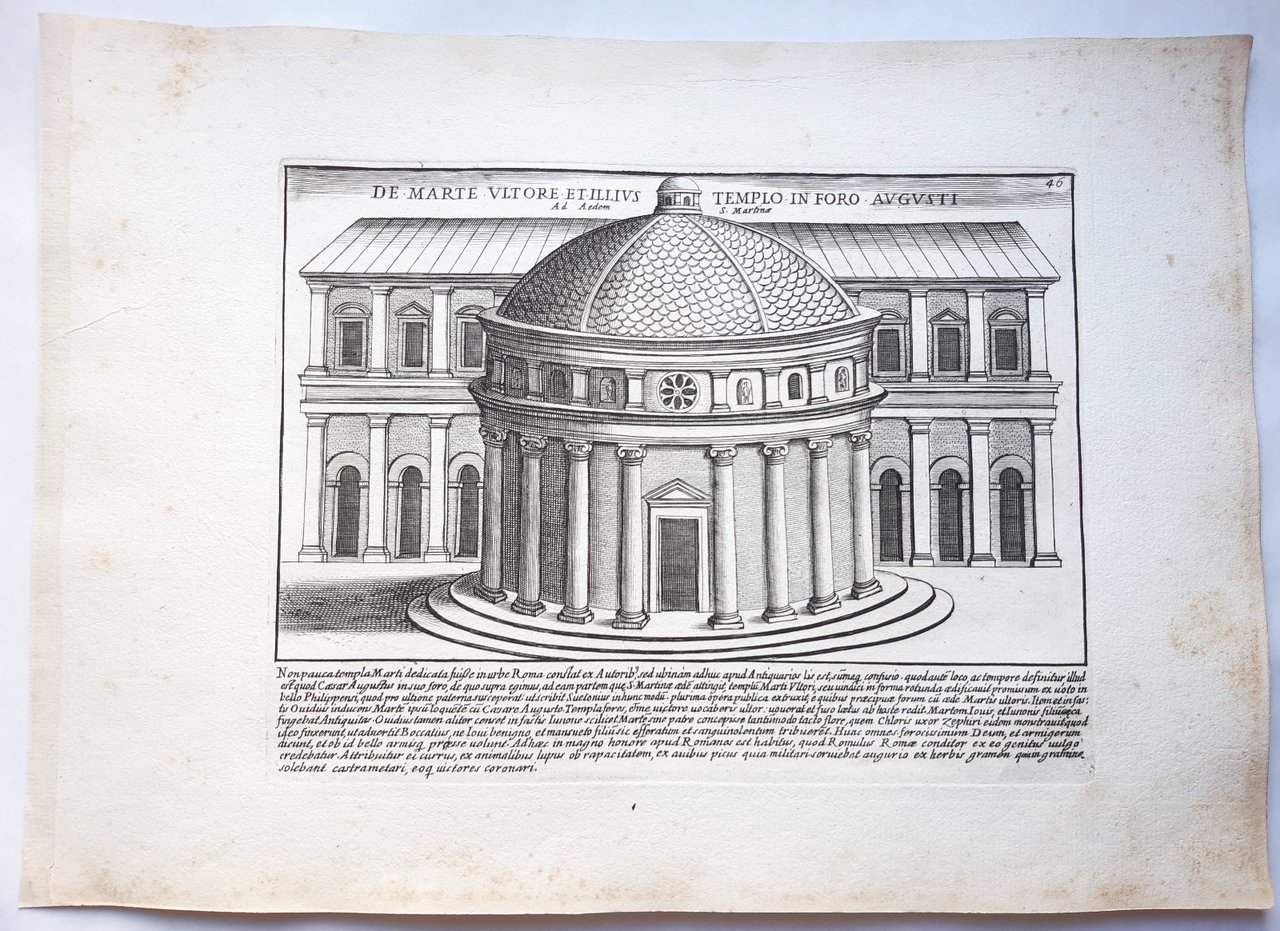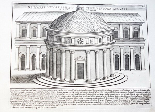 Acquaforte old print Romanae magnitudinis Roma Tempio di Marte G. Lauro 1699
