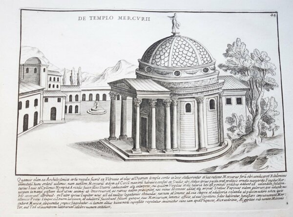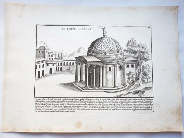 Acquaforte old print Romanae magnitudinis Roma Tempio di Mercurio G. Lauro 1699