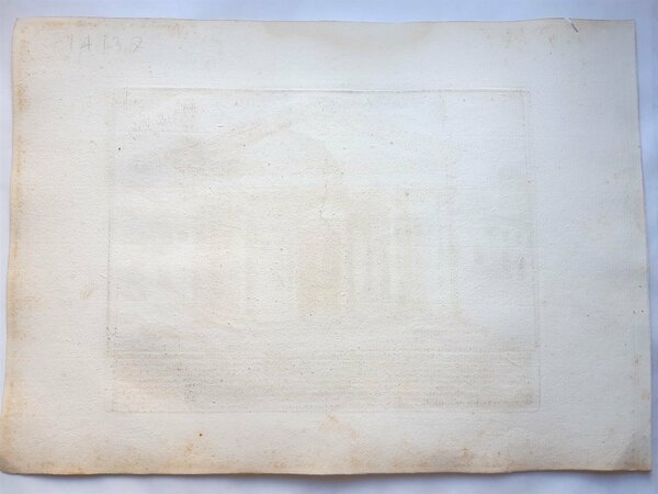 Su carta vergata coeva misure foglio cm. 25 x 35 l'incisione cm. 18 x 23,7 in discreto stato alone di umidità al margine superiore, alcune fioriture, margine sinistro rifilato macchia al margine sinistro, un foro di tarlo al margine superiore