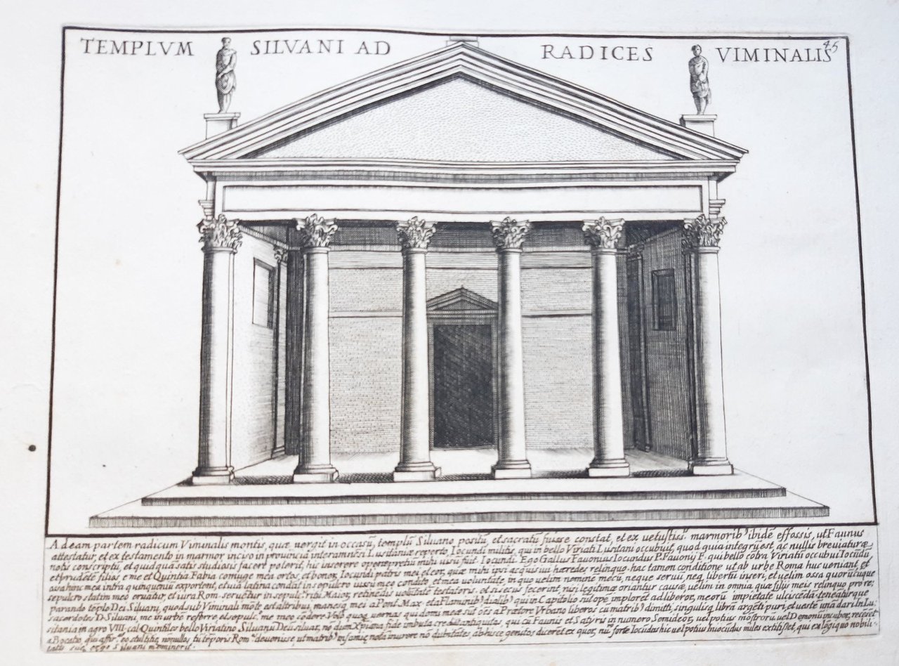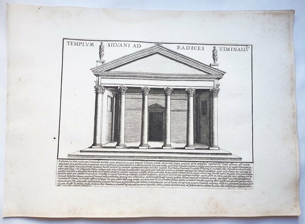 Acquaforte old print Romanae magnitudinis Roma Tempio di Silvano G. Lauro 1699