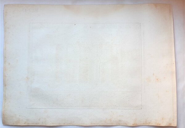 Su carta vergata coeva misure foglio cm. 25 x 35 l'incisione cm. 18 x 23,7 in discreto stato alone di umidità su quasi tutto il foglio, alcune fioriture e piccole pieghe ai margini, margine sinistro rifilato