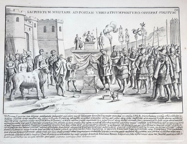 Acquaforte old print Romanae magnitudinis Soldati romani con vessilli e labari G. Lauro 1699