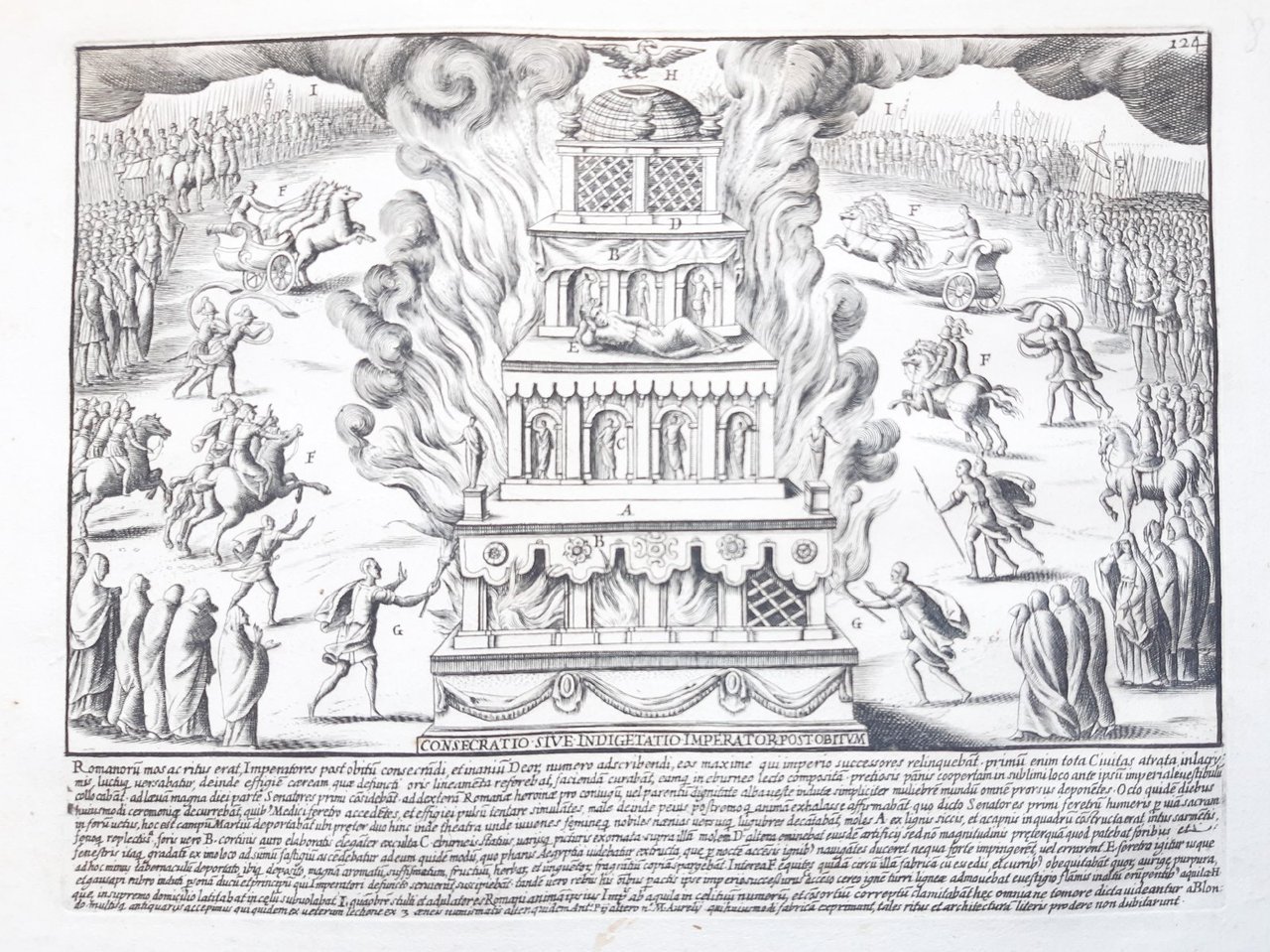 Acquaforte Romanae magnitudinis Roma Cerimonia funeraria per la morte dell'Imperatore G. Lauro 1699