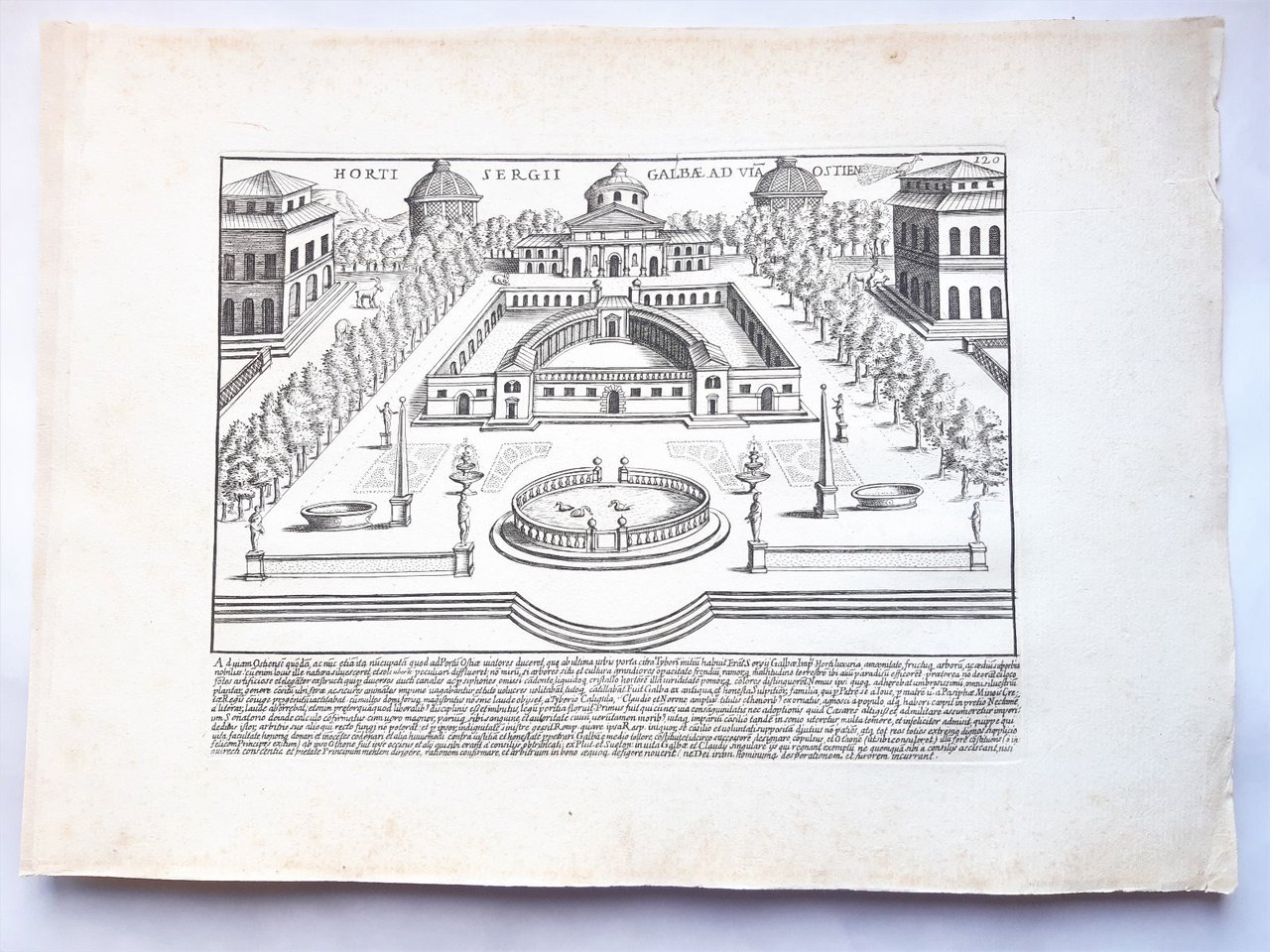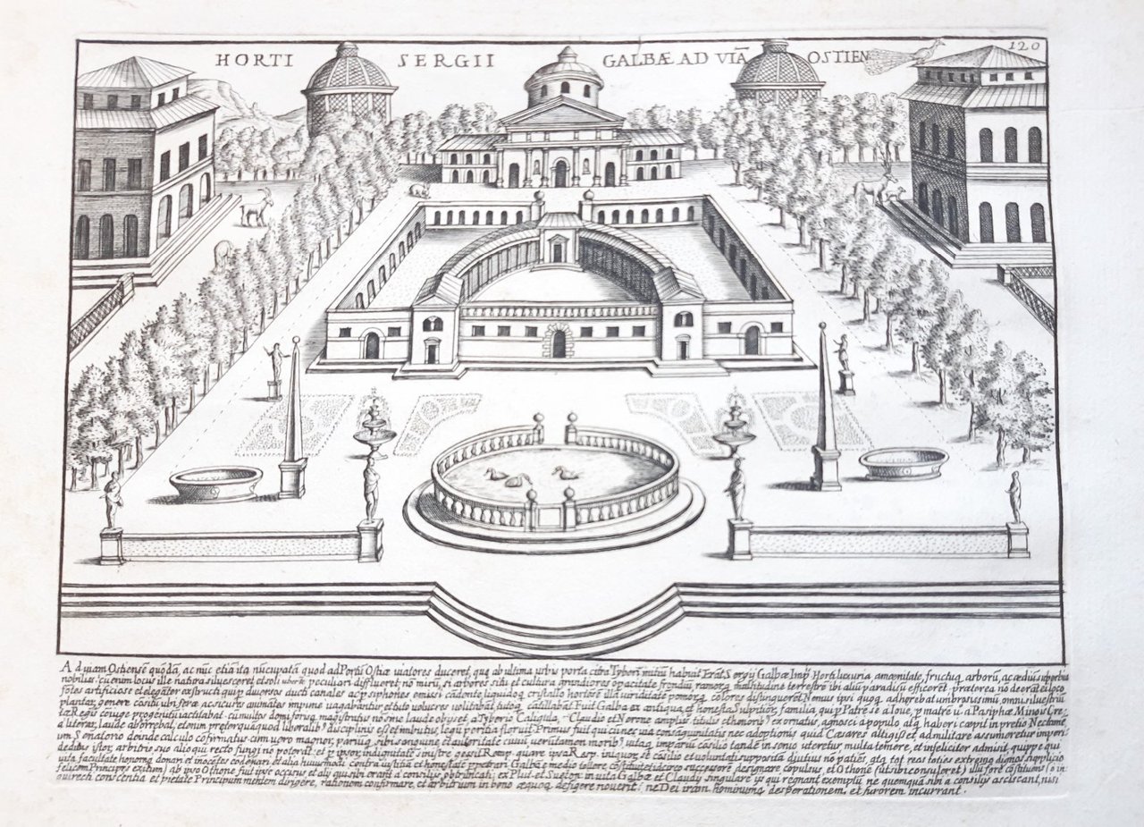 Acquaforte Romanae magnitudinis Roma Giardini di Galba G. Lauro 1699