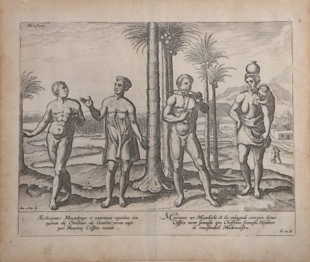 Scena di costume tratta dal celebre Itinerario, voyage ofte schipvaert van J.H. van Linschoten naar Oost ofte Portugaels Indien. L’opera fu pubblicata nel 1596, al ritorno in Olanda dopo anni spesi nelle Indie, in particolare nella colonia portoghese di Goa, dove Linschoten fu al servizio dell’Arcivescovo del Portogallo tra il 1583 ed il 1589. Le carte di Linschoten, basate su accurati portolani portoghesi del XVI secolo, forniscono le rotte più semplici e vantaggiose per il raggiungimento delle Indie. Incisione in rame, in ottimo stato di conservazione. Costumes taken from the famous Itinerario, voyage ofte schipvaert van J.H. van Linschoten naar Oost ofte Portugaels Indien. This plate appeared in Linschoten's book in 1596, once he came back from the Indies. The engraver for this map was Baptista van Doetechum. Cfr. Schilder, Gunter, Monumenta Cartographica Neerlandica, vol VII;