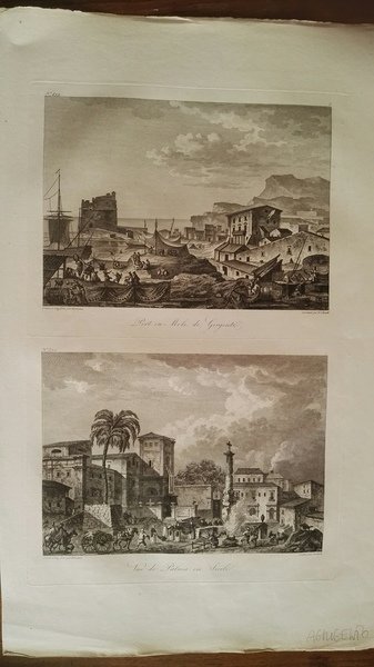 Veduta pubblicata nel “Voyage Pittoresque a Naples et en Sicile". Incisione in rame, ottimo stato di conservazione. Sicile. Dimensioni: 50 cm (lunghezza) x 33,5 (larghezza).