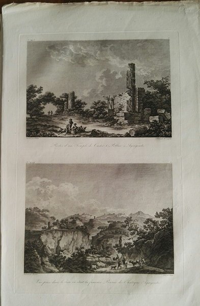 Veduta pubblicata nel “Voyage Pittoresque a Naples et en Sicile". Incisione in rame, ottimo stato di conservazione. Sicile. Dimensioni: 50 cm (lunghezza) x 33,5 (larghezza) cm. Dessinée par Chatelet.
