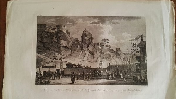 Veduta pubblicata nel “Voyage Pittoresque a Naples et en Sicile". Incisione in rame, ottimo stato di conservazione. Sicile. Dimensioni: 50 cm (lunghezza) x 33,5 (larghezza).