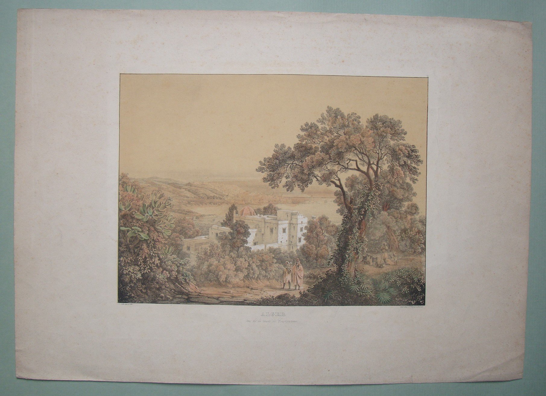 OLTH. Alger. Vue de la route de Constantine. 1850 ca. Drawn and litographed by Olth. Original colours. Cm.22x30.