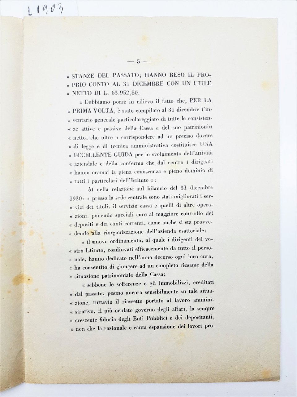 Rieti Cassa Di Risparmio-Causa Per Licenziamento Direttore Mataloni 1936