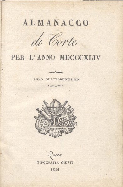 ALMANACCO DELLA CORTE DI LUCCA PER L'ANNO 1844. Anno quattordicesimo.