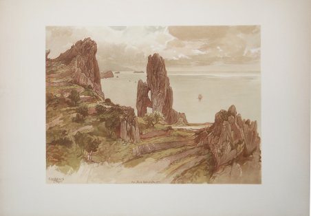 Litografia a colori, 1892 firmata da C. W. Allers. Christian Wilhelm Allers (Amburgo, 6 agosto 1857 – Karlsruhe, 19 ottobre 1915) è stato un disegnatore, pittore e illustratore tedesco. Figlio di un commerciante, iniziò a lavorare come litografo e nel 1877 si trasferì a Karlsruhe dove continuò in tale professione. Alla Kunstakademie (l'accademia statale di belle arti) fu studente del Professor Ferdinand Keller. Allers divenne noto quando pubblicò la sua collezione di stampe, Club Eintracht nel 1888. Seguirono diversi altri libri e raccolte di stampe (ad esempio una su Bismarck), tanto che all'inizio degli anni 1890 fu in grado di farsi costruire una villa a Capri, dove visse per molti anni, passando del tempo anche ad Amburgo, a Karlsruhe, e viaggiando per il mondo. C.W. Allers fu un artista naturalista. I suoi disegni sono ricchi di dettagli e hanno uno stile realistico. Perfetto stato di conservazione. Color lithograph, 1892 signed by W. Allers. ' Christian Wilhelm Allers (Hamburg, August 6, 1857 - Karlsruhe, October 19, 1915) was a German draftsman, painter and illustrator. The son of a merchant, he began working as a lithographer and in 1877 moved to Karlsruhe where he continued in that profession. At the Kunstakademie (the state academy of fine arts) he was a student of Professor Ferdinand Keller. Allers became well-known when he published his print collection, Club Eintracht in 1888. Several other books and print collections followed (for example, one on Bismarck), so much so that in the early 1890s he was able to have a villa built in Capri, where he lived for many years, also spending time in Hamburg, Karlsruhe, and traveling the world. C.W. Allers was a naturalist artist. His drawings are rich in detail and have a realistic style. Perfect state of preservation. Cfr.