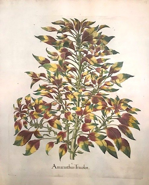 Incisione originale su rame (cm. 40x48 più ampi margini bianchi) tratta dal celebre erbario ‘Hortus Eystettensis’. Ottimo esemplare in splendida coloritura antica all’acquarello. Prima edizione pubblicata in soli 300 esemplari. Besler fu un rinomato farmacista e botanico di Norimberga, curatore del giardino botanico (unico importante in Europa al di fuori dell’Italia) di Johann Konrad von Gemmingen, principe vescovo di Eichstätt in Baviera. Fu lo stesso vescovo a commissionare questa monumentale opera. L’ ‘Hortus’, frutto di 16 anni di lavoro, contiene ben 367 tavole - che mostrano fioritura e fruttificazione nelle diverse stagioni - incise da alcuni tra i più valenti artisti tedeschi dell’epoca dai disegni originali dello stesso Basilius Besler. Cfr. ‘The book of plants’, Taschen 2007.