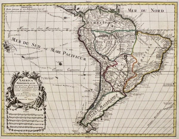 Incisione in rame, coloritura originale d'epoca, mm 475x575. Carta originale di G. de L'Isle ristampata da Lotter, che, incisore e geografo tedesco, dopo aver lavorato per Seutter, suo suocero, ne rilevò l'attività alla sua morte mantenendo alto il livello artistico della sua produzione. Discreto esemplare con qualche traccia di piega e sporco superficiale ai margini. <BR>