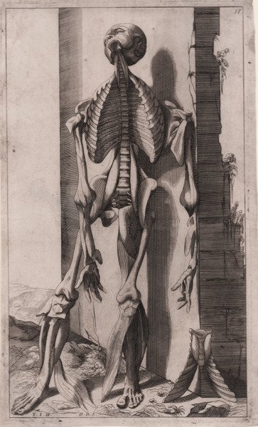 Bulino, 1670 circa, monogrammato in lastra in basso. Da un soggetto di Tiziano. Bellissima prova, impressa su carta vergata coeva, con margini sottili, leggere abrasioni nel margine superiore ma in buono stato di conservazione. La stampa fa parte dell’opera ' Notomie di Tiziano ' dedicate ' all'Ill.mo Sig. Francesco Ghislieri, edita a Bologna tra il 1670 ed il 1680. Il frontespizio contiene il ritratto di Tiziano tra le foglie di alloro, il leone di San Marco e un drappo contenente la dedica. Seguono 17 incisioni anatomiche, 3 dello scheletro e 14 dei muscoli. Quattordici delle tavole sono tratte dal ' De humani corporis fabrica ' del Vesalio e le altre dalle ' Tabulae anatomicae VI, pure del Vesalio. Queste ultime, in realtà, non furono disegnate da Tiziano, bensì da Jan van Calcar; per il primo gruppo, invece, la paternità è dubbia e controversa. Rara. Engraving, 1670 circa, monogrammed in plate below. After Titian. Beautiful impressions, printed on contemporary laid paper, with thin margins, light abrasions in the top, otherwise in good condition. These works are part of ' Notomie di Tiziano dedicate all'Ill.mo Sig. Francesco Ghislieri, ' published in Bologna between 1670 and 1680. The title page contains the portrait of Titian between the bay leaves, the lion of St. Mark and a cloth containing the dedication. Here are 17 anatomical engravings: 14 of the plates are taken from ' De humani corporis fabrica of Vesalius ' and the other from ' Tabulae anatomicae VI, also of Vesalius. These, in fact, were not actually designed by Titian but by Jan van Calcar, while the first group’s paternity is uncertain and controversial. Rare. Cfr. M.A. Chiari, Incisioni da Tiziano, 77; Muraro-Rosand, 1980, 307-316; Choulant, 196; Le Blanc, I, 449.