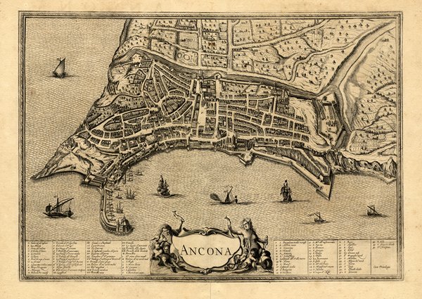 ANCONA - JANSSONIUS, Johannes - "Ancona". Veduta dall'alto della città e del porto.