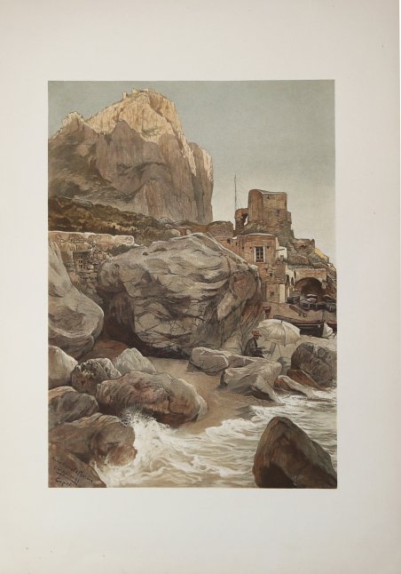 Litografia a colori, 1892 firmata da C. W. Allers. Christian Wilhelm Allers (Amburgo, 6 agosto 1857 – Karlsruhe, 19 ottobre 1915) è stato un disegnatore, pittore e illustratore tedesco. Figlio di un commerciante, iniziò a lavorare come litografo e nel 1877 si trasferì a Karlsruhe dove continuò in tale professione. Alla Kunstakademie (l'accademia statale di belle arti) fu studente del Professor Ferdinand Keller. Allers divenne noto quando pubblicò la sua collezione di stampe, Club Eintracht nel 1888. Seguirono diversi altri libri e raccolte di stampe (ad esempio una su Bismarck), tanto che all'inizio degli anni 1890 fu in grado di farsi costruire una villa a Capri, dove visse per molti anni, passando del tempo anche ad Amburgo, a Karlsruhe, e viaggiando per il mondo. C.W. Allers fu un artista naturalista. I suoi disegni sono ricchi di dettagli e hanno uno stile realistico. Perfetto stato di conservazione. Color lithograph, 1892 signed by W. Allers. ' Christian Wilhelm Allers (Hamburg, August 6, 1857 - Karlsruhe, October 19, 1915) was a German draftsman, painter and illustrator. The son of a merchant, he began working as a lithographer and in 1877 moved to Karlsruhe where he continued in that profession. At the Kunstakademie (the state academy of fine arts) he was a student of Professor Ferdinand Keller. Allers became well-known when he published his print collection, Club Eintracht in 1888. Several other books and print collections followed (for example, one on Bismarck), so much so that in the early 1890s he was able to have a villa built in Capri, where he lived for many years, also spending time in Hamburg, Karlsruhe, and traveling the world. C.W. Allers was a naturalist artist. His drawings are rich in detail and have a realistic style. Perfect state of preservation. Cfr.