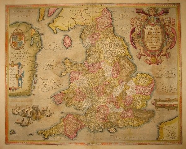 Incisione originale su rame (cm. 48,8x39 più margini) tratta dal ‘Theatrum Orbis Terrarum’. Splendida coloritura antica all’acquarello. Abili restauri lungo la piegatura centrale e lievi tracce di ossidazione ma buon esemplare. Provenienza: Biblioteca del Castello di Cirey. Van den Broecke, 20.