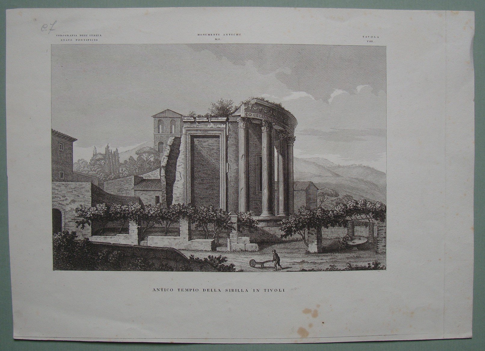 ZUCCAGNI ORLANDINI. Antico Tempio della Sibilla in Tivoli. 1860 ca. Incisione. Cm. 20x28.
