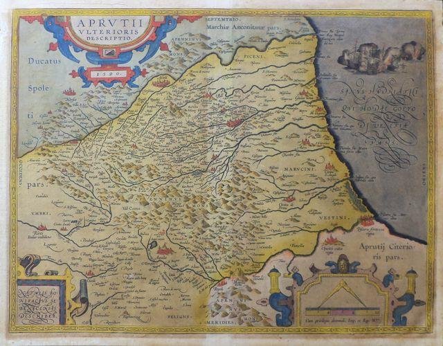 Anversa, 1590 circa. Dal “Theatrum Orbis Terrarum”, incisione in rame, colore d'epoca, cm 33 x 43 (alla lastra) più margini, testo francese al verso, in alto a sn. titolo entro cartiglio a volute geometriche. La carta deriva da quella pubblicata da Natale Bonifacio nel 1587 (in bs. sulla sn., in piccolo riquadro, “Natalis Bonifacius. describeb.”). Il "Theatrum Orbis Terrarum" è stato il primo atlante moderno, comprendente carte di tutte le zone del mondo. Prima di allora la produzione cartografica era stata irregolare, locale a livello di produzione, e i pochi atlanti, i cosiddetti "Atlanti Lafreriani" erano costituiti su richiesta, raccogliendo carte di alcune zone e ignorando le altre. La geniale intuizione di Ortelio fu appunto quella di riunire, in un unico corpus, la produzione cartografica del periodo, costituendo la base per un'impresa editoriale di enorme successo che sarebbe stata pubblicata dal 1570 al 1612. Esemplare uniformemente brunito e con difetti marginali, stretti margini, bella la coloritura. .