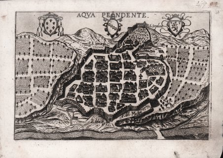 Pianta della città tratta dal celebre "Theatrum urbium Italicarum", raccolta di vedute urbane della penisola pubblicata per la prima volta a Venezia nel 1599. La prima edizione comprendeva cinquantanove tavole con piante e vedute prospettiche adespote, di mano di più incisori, accompagnate da una descrizione latina, che uscirono isolatamente stampate a Venezia (forse nella bottega di Francesco Bertelli), ma con la dedica datata sempre da Padova. Ignoto è l'autore del testo, anche se è stato supposto che ne sia autore lo stesso Bertelli. L'edizione, comunemente considerata seconda, uscì a Vicenza, nel 1616, per i tipi di Domenico Amadio, con titolo italiano di "Teatro delle città d'Italia", con l'aggiunta di alcune tavole (67 anziché 59), ma fu preceduta da una edizione non datata costituita dai rami senza testo. “L’ultima raccolta di cartografia urbana del XVI secolo, venne stampata da Pietro Bertelli (1571 circa - 1621) nel 1599 Pietro era editore, incisore e tipografo, figlio di Ferrando Bertelli, lavoro a Padova, nella Libreria all’insegna dell’Angelo, a Venezia e a Vicenza. Come incisore, nel 1589 collaboro ad alcune tavole dell’opera Diversarum nationum habitus… composta da 106 stampe, edita in collaborazione con Alciato Alciati. Per le Vite degli imperatori de’ Turchi con le loro effigie intagliate in rame per i tipi di Giorgio Greco, edita a Vicenza nel 1599, Bertelli incise quindici ritratti. Nello stesso anno usci il Theatrum Urbium Italicarum, serie di 59 tavole con vedute e piante accompagnate da descrizione latina, eseguite da più incisori, poi ristampata, accresciuta, anche con il titolo italiano Teatro delle città d’Italia, per i tipi di Domenico Amadio. Alla sua morte, l’attività prosegui con suo figlio Francesco, anch’egli tipografo, incisore e editore. La sua marca tipografica era un angelo in piedi con le ali spiegate, l’avambraccio destro puntato verso l’alto con l’indice al cielo e un giglio nella mano sinistra. Il Teatro delle città d’Italia venne più volte ristampato e implementato da Francesco nel corso del secolo successivo” (cfr. S. Bifolco, Città e Fortezze Principali del Mondo. Le prime raccolte italiane di cartografia urbana e gli isolari del XVI secolo in “Cartografia e topografia italiana del XVI secolo” p. 133). Incisione in rame, in ottimo stato di conservazione. City plan taken from the famous ' Theatrum urbium Italicarum, ' a collection of urban views of the peninsula first published in Venice in 1599. The first edition comprised fifty-nine plates with plans and perspective views by several engravers, accompanied by a Latin description, which were printed separately in Venice (possibly in Francesco Bertelli's workshop), but with the dedication also dated from Padua. The author of the text is unknown, although it has been suggested (Mazzuchelli) that Bertelli himself was the author. This edition, commonly regarded as the second, was published in Vicenza in 1616 for the types of Domenico Amadio, with the Italian title of "Teatro delle città d'Italia", with the addition of some plates (67 instead of 59) but was preceded by an undated edition consisting of the plates without text. “L’ultima raccolta di cartografia urbana del XVI secolo, venne stampata da Pietro Bertelli (1571 circa - 1621) nel 1599 Pietro era editore, incisore e tipografo, figlio di Ferrando Bertelli, lavoro a Padova, nella Libreria all’insegna dell’Angelo, a Venezia e a Vicenza. Come incisore, nel 1589 collaboro ad alcune tavole dell’opera Diversarum nationum habitus… composta da 106 stampe, edita in collaborazione con Alciato Alciati. Per le Vite degli imperatori de’ Turchi con le loro effigie intagliate in rame per i tipi di Giorgio Greco, edita a Vicenza nel 1599, Bertelli incise quindici ritratti. Nello stesso anno usci il Theatrum Urbium Italicarum, serie di 59 tavole con vedute e piante accompagnate da descrizione latina, eseguite da più incisori, poi ristampata, accresciuta, anche con il titolo italiano Teatro delle città d’Italia, per i tipi di Domenico Amadio. Alla sua morte, l’attività prosegui con suo figlio Francesco, anch’egli tipografo, incisore e editore. La sua marca tipografica era un angelo in piedi con le ali spiegate, l’avambraccio destro puntato verso l’alto con l’indice al cielo e un giglio nella mano sinistra. Il Teatro delle città d’Italia venne più volte ristampato e implementato da Francesco nel corso del secolo successivo” (cfr. S. Bifolco, Città e Fortezze Principali del Mondo. Le prime raccolte italiane di cartografia urbana e gli isolari del XVI secolo in “Cartografia e topografia italiana del XVI secolo” p. 133). Copperplate engraving, in good condition. Cfr.