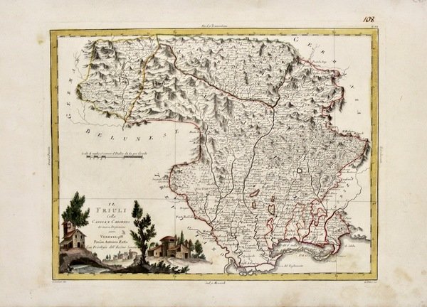 Incisione in rame, mm 370x490, coloritura d'epoca. Belle vedute delle città di Acquapendente nello scomparto superiore e Treviso in quello inferiore, tratte da "Civitates Orbis Terrarum", pietra miliare del vedutismo, pubblicata in anni differenti dal 1572 al 1615 ca. in 6 volumi. Fascinoso esemplare, con qualche traccia leggera di sporco superficiale, piccolo difetto alla prima lettera E di Aquapendente, restaurato. Antica aggiunta manoscritta agli angoli.