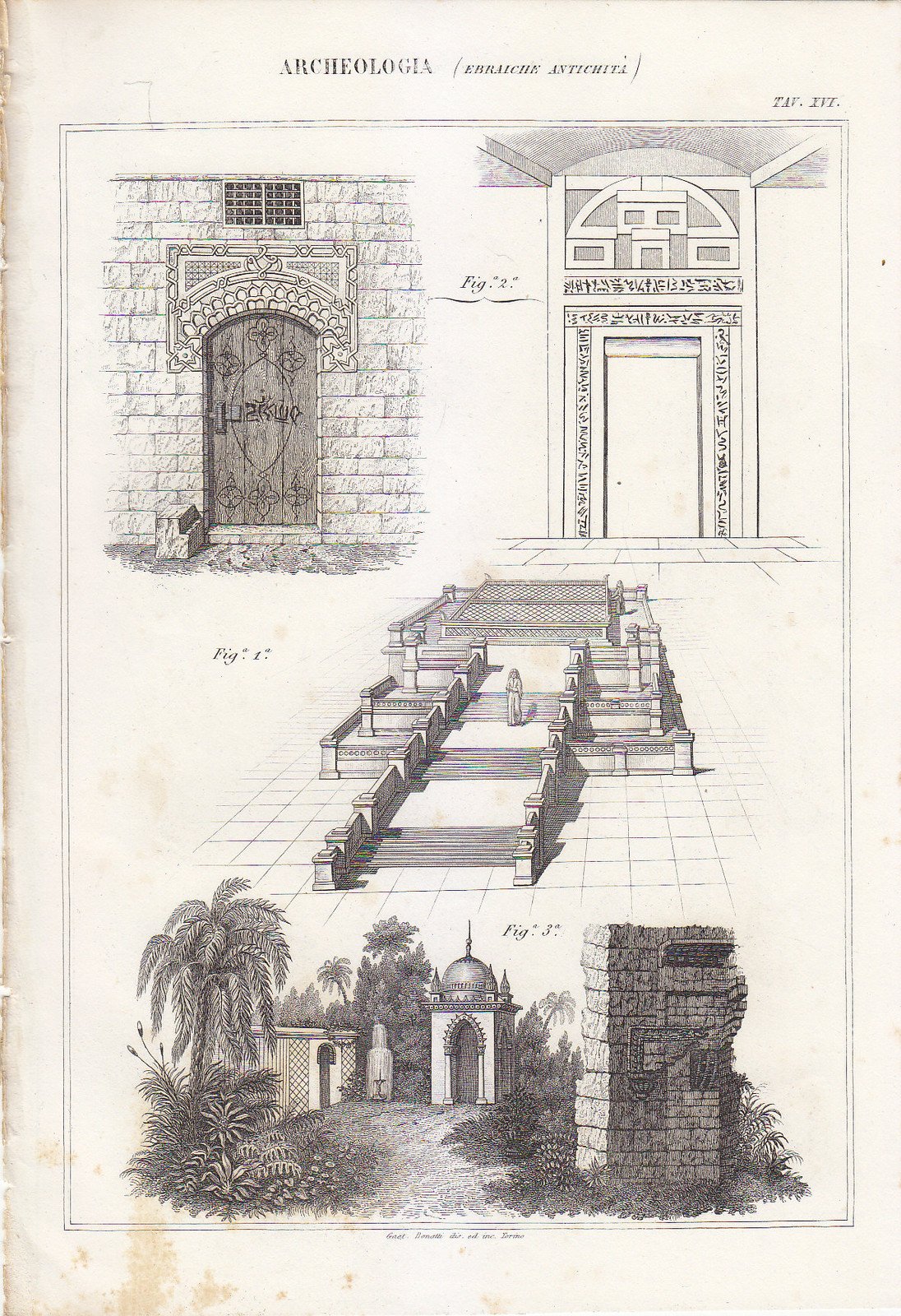 ARCHEOLOGIA EBRAICA ANTICHITA' Incisione Stampa Antica 1866 Originale tavola XVI