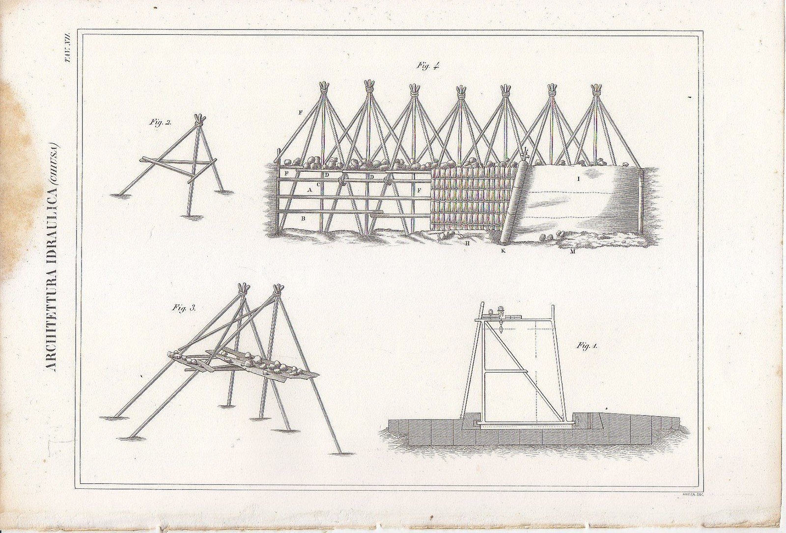 ARCHITETTURA IDRAULICA CHIUSA (4) Incisione Stampa Antica 1866 TAVOLA ORIGINALE