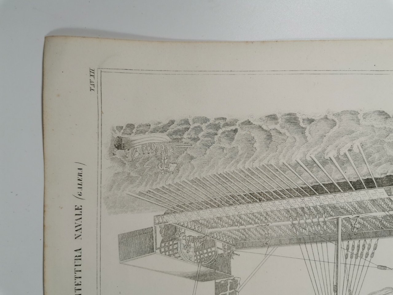 ARCHITETTURA NAVALE GALERA Incisione Stampa Rame 1866 Tavola Originale antica