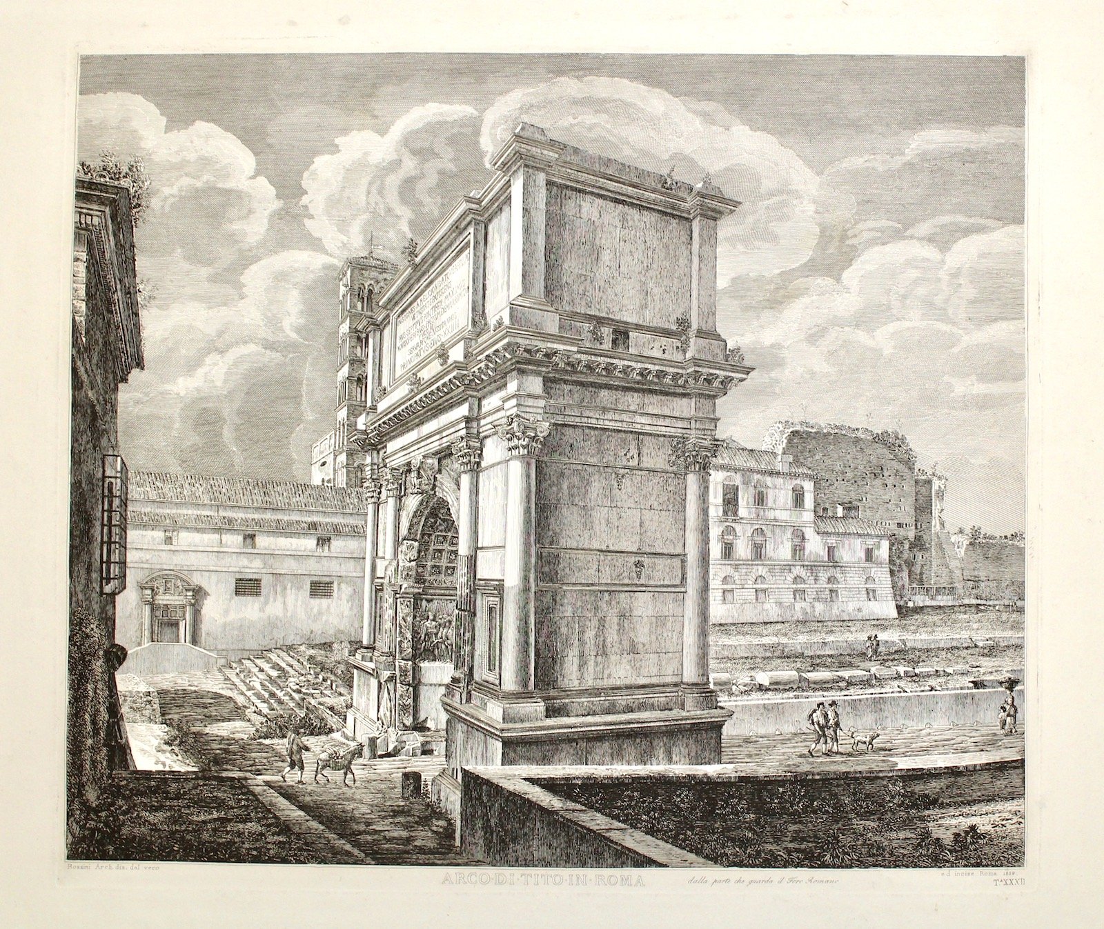 Incisone in rame, 405x462, tratta da "Gli Archi Trionfali.". Esemplare perfetto.
